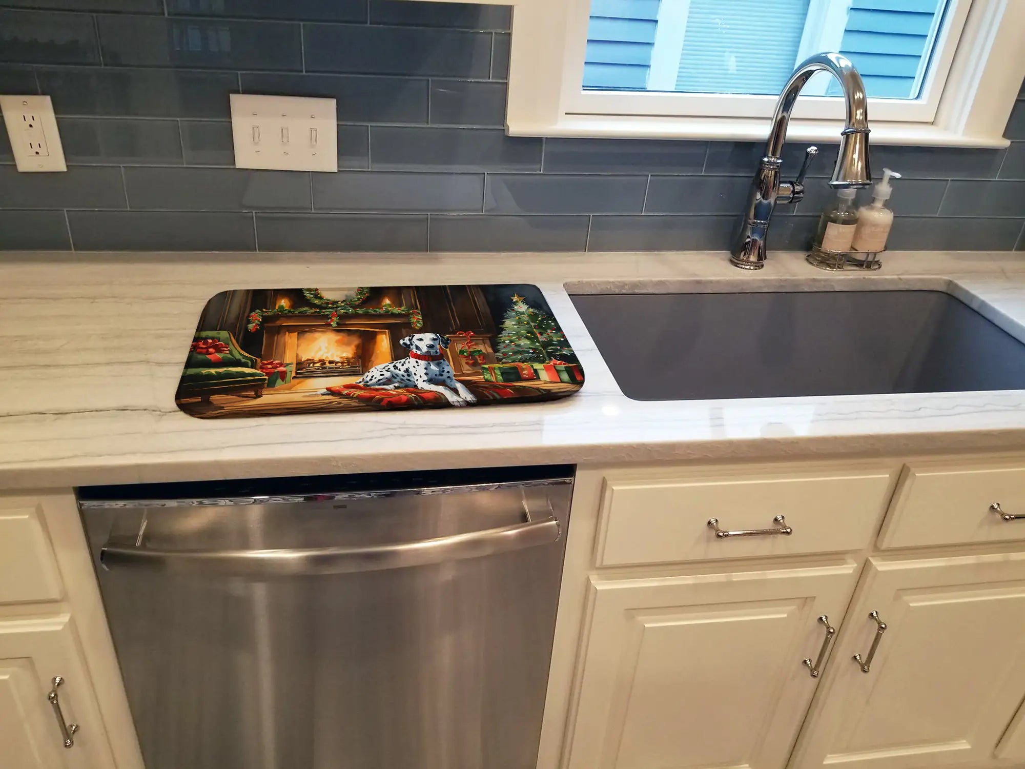 Dalmatian Cozy Christmas Dish Drying Mat